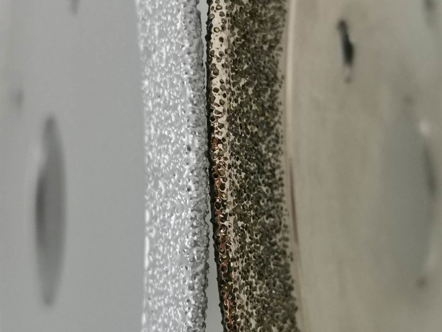 Diamond brazing saw blade adopts diamond surface metallization technology, welding diamond with active filler metal or nickel-based filler metal, forming element or alloy by strong carbide, so that the metallurgical chemical combination of diamond and tool matrix is realized, greatly improving the control force of diamond.Brazing diamond saw blade is suitable for cutting ceramics, microspar, artificial stone, marble, super sharp.
