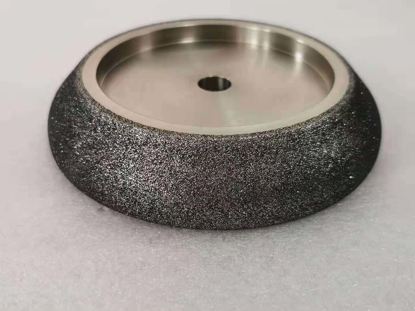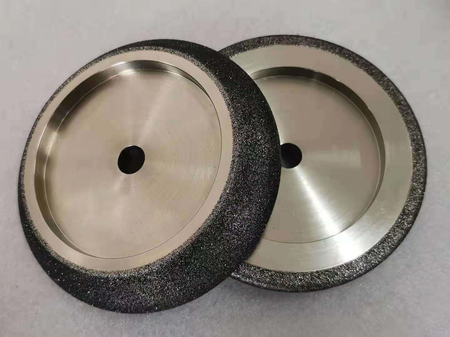 CBN or Cubic Boron Nitride grinding wheels are electroplated and nickel coated. Electroplating offers many advantages over other applications. It creates a more aggressive bond over other applications and will hold a form longer. It also performs a higher stock removal rate and will last for years. They are designed for sharpening wood band saw only and should not be used for other applications