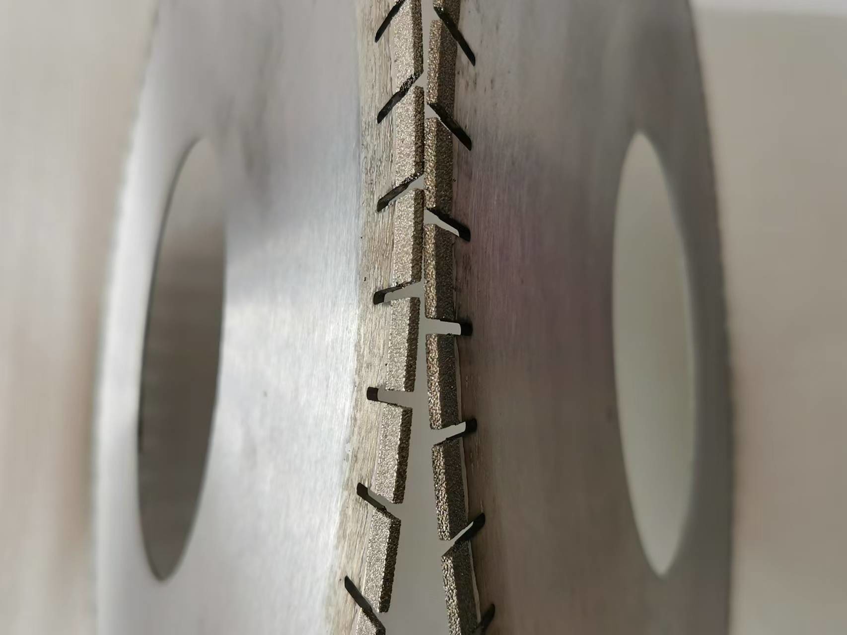 The Diamond Blades are designed for fast cutting marble &granite in very limited chipping.The segments are re-pressed in cold press and then hot press sintered, that process gives the segments in high density for strong hold diamond and thus gives the blades better performance and longer life.